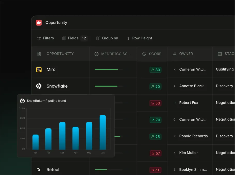 Track engagement, surface hidden risks, and predict deal outcomes with intelligent insights that evolve as your pipeline does.